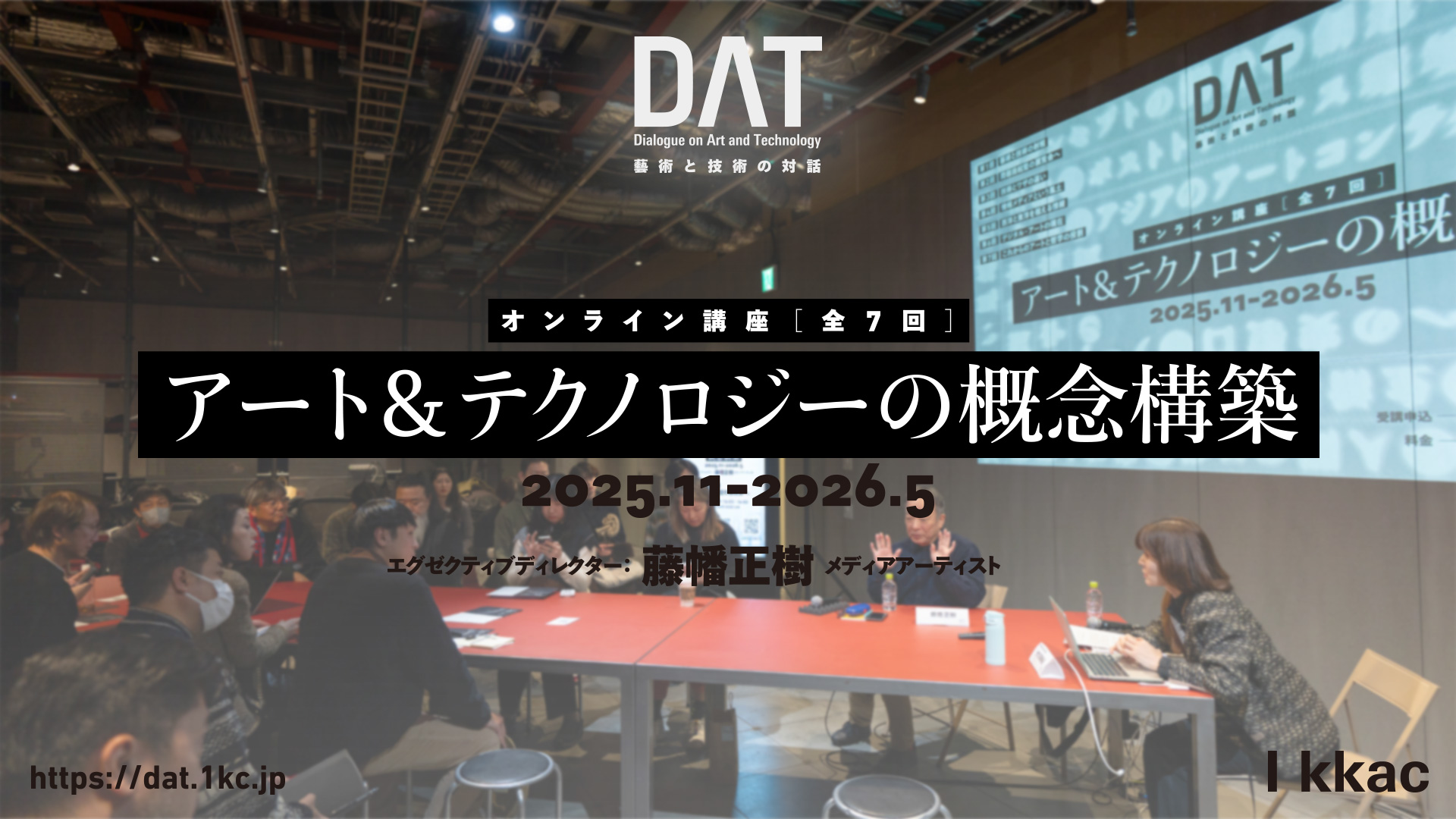 「藝術と技術の対話(DAT)」アート&テクノロジー分野の持続的な発展に寄与するため、批評と対話を促進する専門家の育成を目的とするプロジェクトです。今後3年にわたり、講座や調査研究、ブートキャンプ、国内外での展覧会の企画・実施、シンポジウム等の多角的なプログラムを展開する予定です。